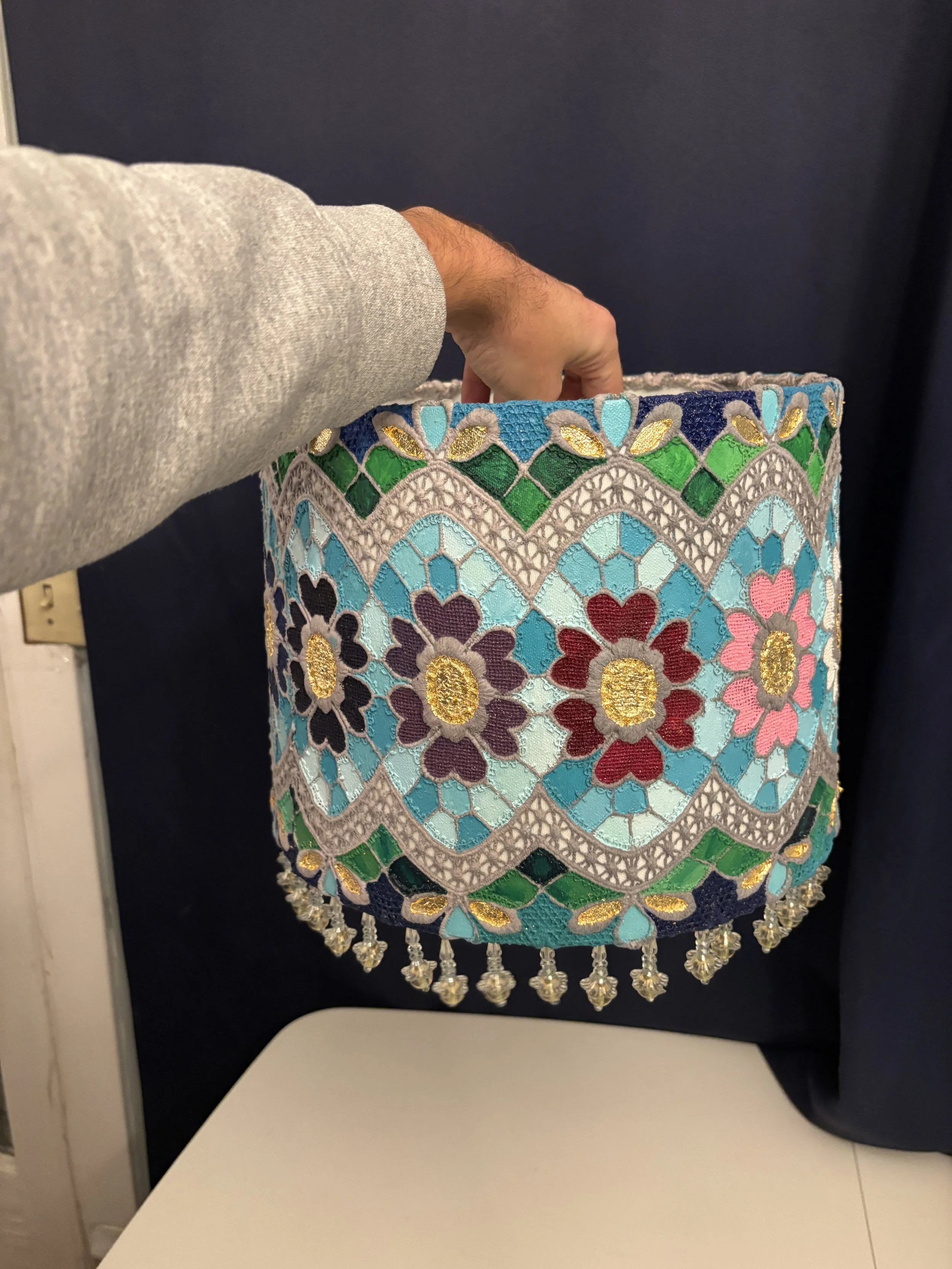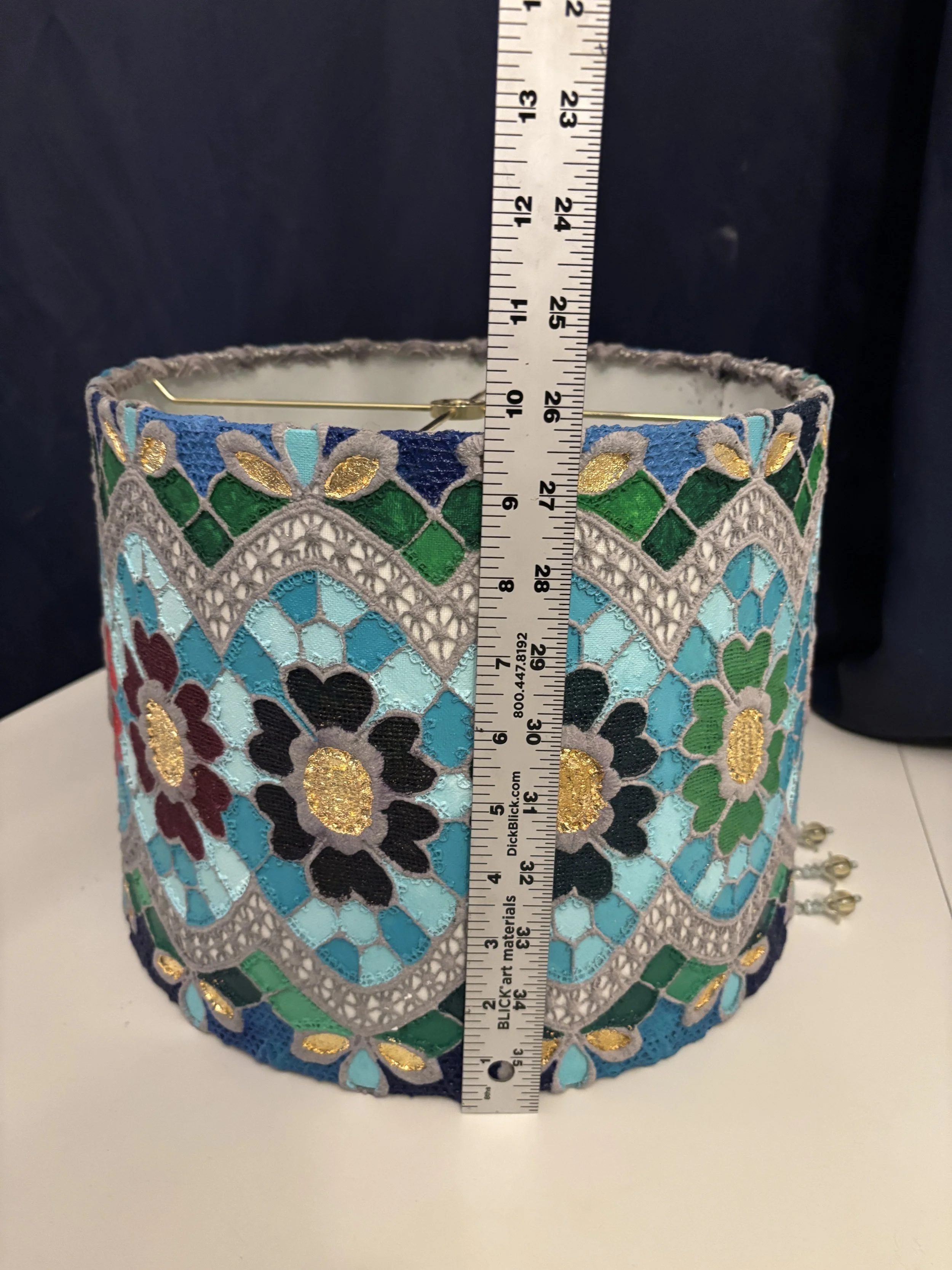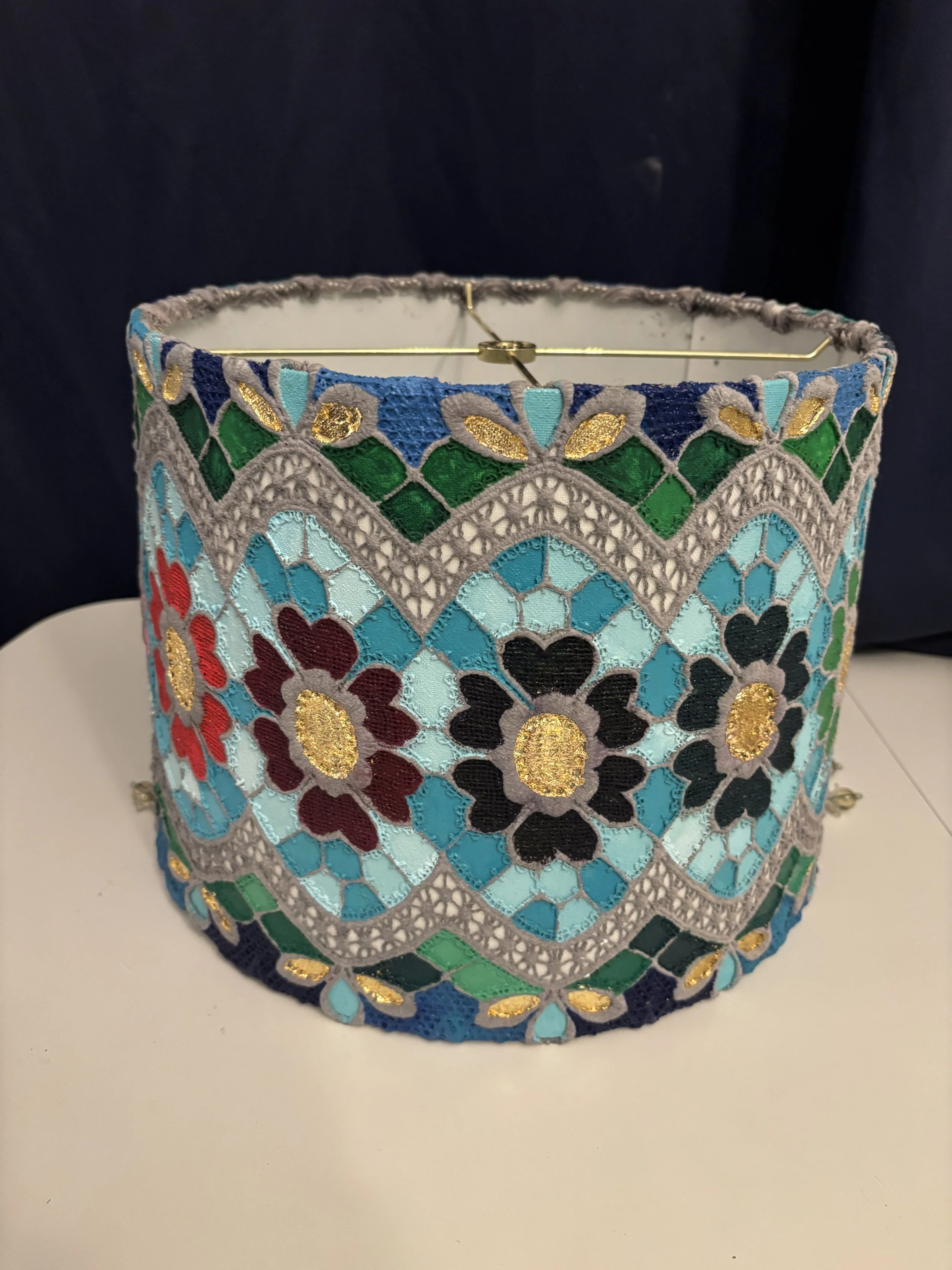Lace Paintings Categories: All Lace Paintings Oil Paintings Prints Ceramics All / Tiffany Glass Inspired Lace Lampshade $200.00 Sold out Multicolored Golf Leaf Lace Painting Sale Price: $225.00 Original Price: $250.00 Sold out Green and Gold Leaf Lace Painting Sale Price: $175.00 Original Price: $200.00 Sold out
